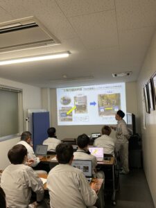 半年間かけてリーダーに向けた学習を通してスキルアップしたことを活かして、業務改善に取り組んだ内容を幹部社員や直属長の前で、一人15分程度で発表していきました。
