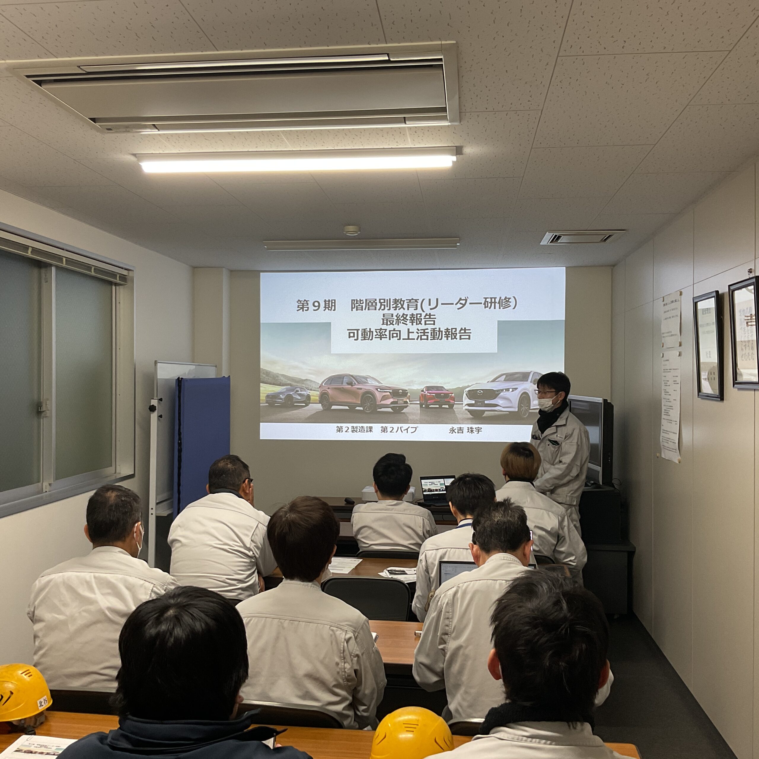 半年間かけてリーダーに向けた学習を通してスキルアップしたことを活かして、業務改善に取り組んだ内容を幹部社員や直属長の前で、一人15分程度で発表していきました。