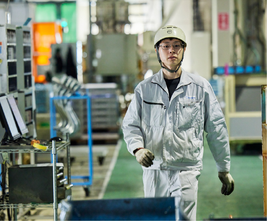 プレス加工や溶接加工、パイプの曲げ加工など様々な加工工程に携われるのが魅力だと思います。