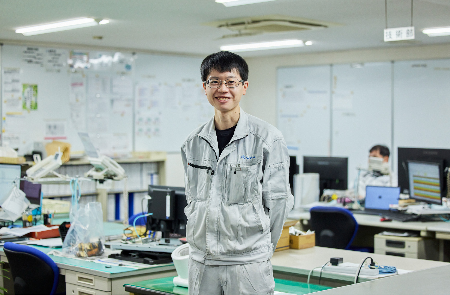 私は、技術部技術課に所属しており、新規部品の量産準備や実施検証、品質改善活動、量産不具合対応などを行っています。
