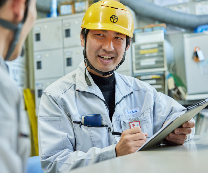 第2製造課の課長代行として会社の方針に従い改善計画立案し、目標達成の為に課内ミーティング等を通し各職長とコミュニケーションを取りながら改善の実行、進捗管理等マネジメントを行ってます。