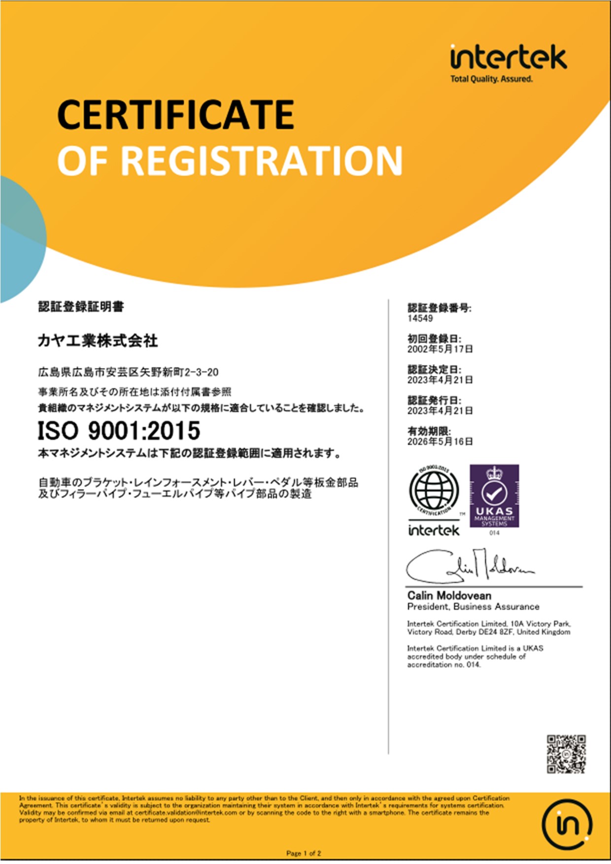 エンジン、ドア、シート、ブレーキ周りと車体全般に渡るブラケット、レインフォースメント等の生産をしています。